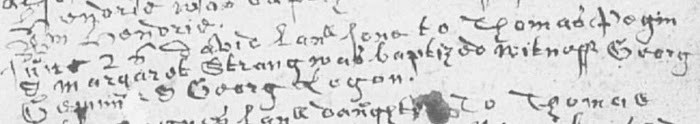 The next baptism is for Thomas Pagan and Hellen Kirpatrick, another son named Thomas baptized on November 26, 1674 followed by a daughter Mary baptized on September 11, 1676.